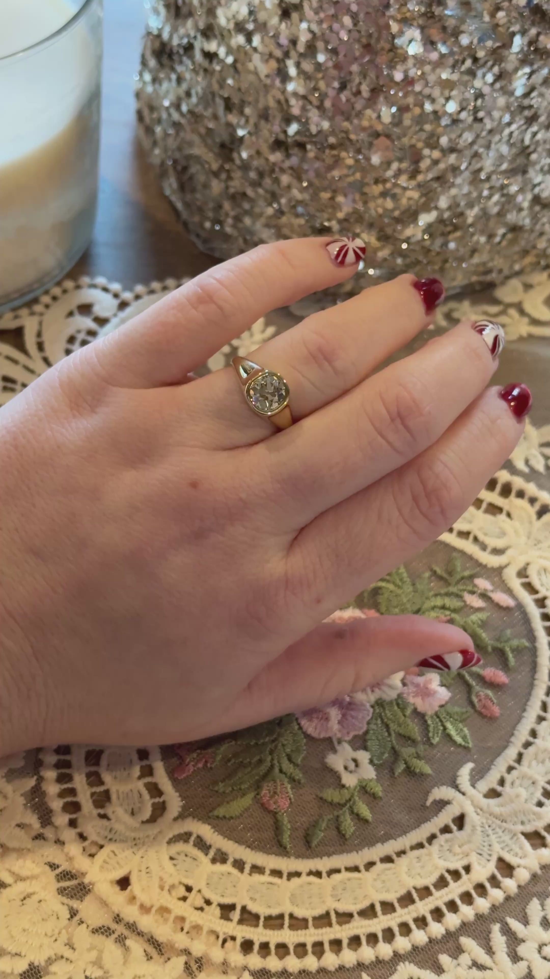 The Cottage is one of our classic solitaire designs, crafted in heavy, buttery 18k yellow gold. At its center sits a genuine antique natural diamond whose girdle is fully protected by the bezel setting.